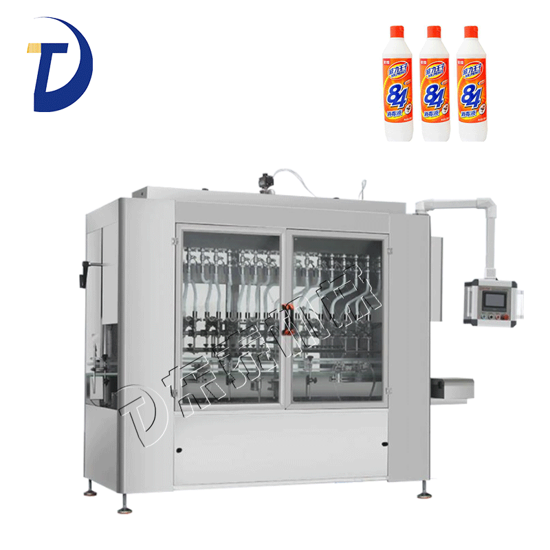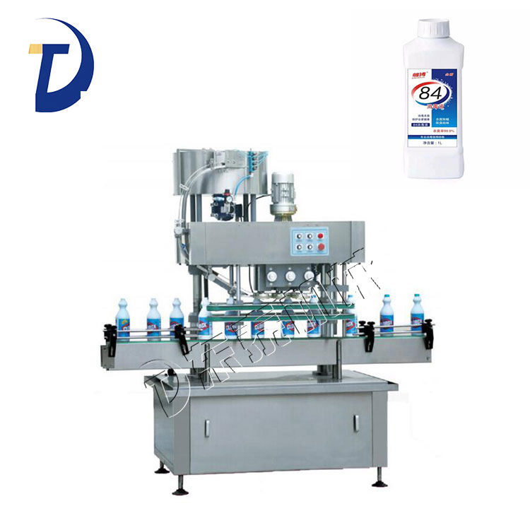 84消毒液灌裝機設備,是目前國內液體灌裝的高端產品,自動化程度高,灌裝計量精確,適用于塑料瓶、玻璃瓶電子量杯感應直列式灌裝機,是目前國內液體灌裝的高端產品,自動化程度高,灌裝計量精確,適用于塑料瓶、玻璃瓶等各種幾何形狀的瓶型的不含氣體的溶液、酒精、消毒水及其他溶液的定量灌裝。